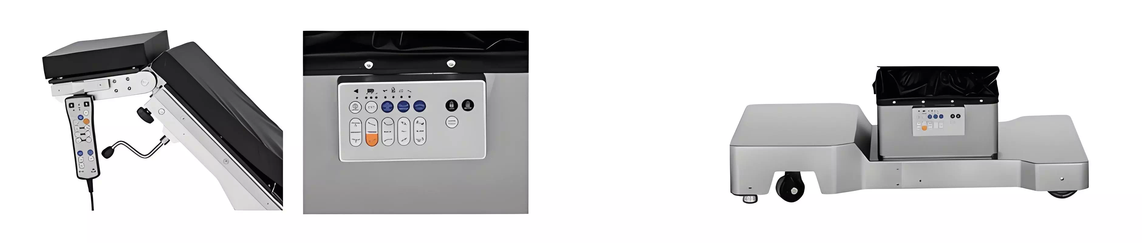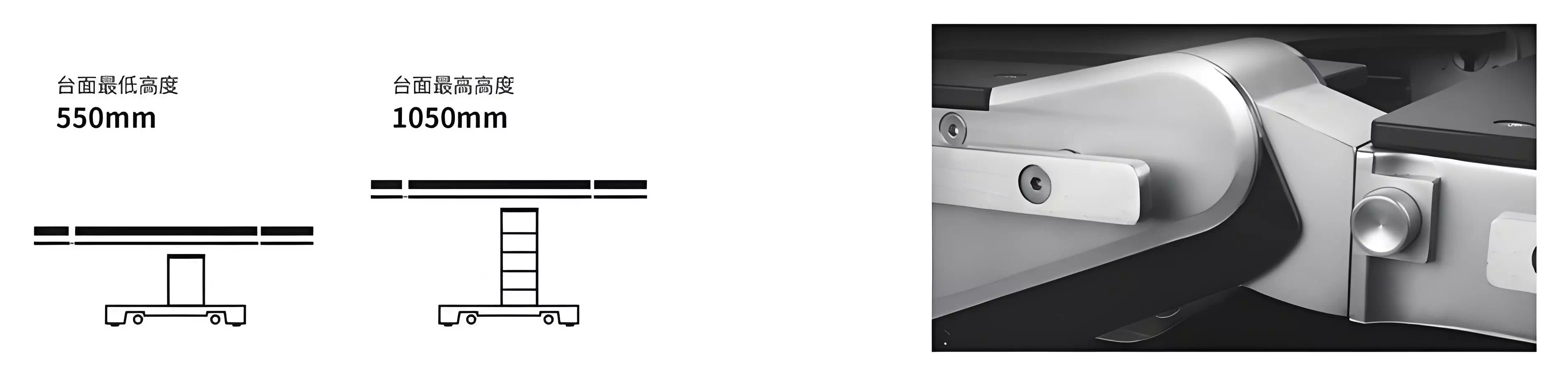 - 手术台升降罩筒、底座罩壳、导轨及配件等皆为不锈钢材料,机械强度高且便于清洗。